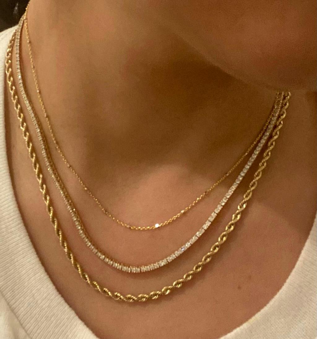 Each diamond in this necklace is carefully chosen for its exceptional cut, clarity, and color, ensuring that every stone is of the highest quality. The 1.6mm diameter of each diamond is the perfect size to create a subtle yet striking effect that catches the light beautifully.