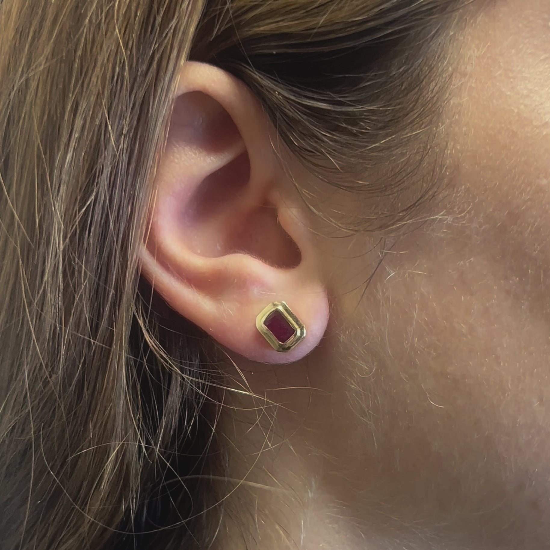 These stud earrings are made of 14K gold, which is a durable and long-lasting metal that complements the deep and rich red hue of the rubies. The gold adds a warm and luxurious touch to the earrings, making them a great option for special occasions or everyday wear.