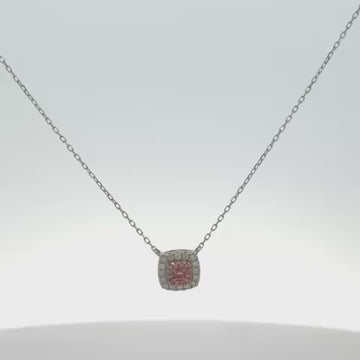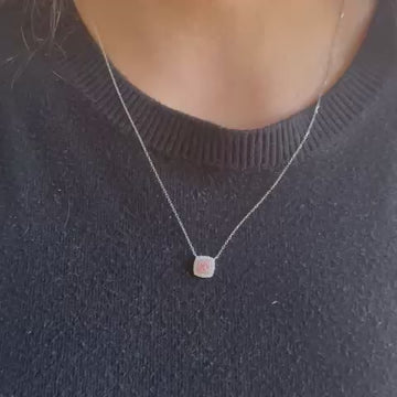 At its center lies a cluster of soft pink diamonds (0.07 ct.), encircled by a double halo of sparkling white diamonds (0.18 ct.), creating a breathtaking contrast of brilliance and warmth. The square pendant, measuring 8mm x 8mm, offers just the right balance of subtle luxury and modern charm—perfect for everyday wear or special occasions.