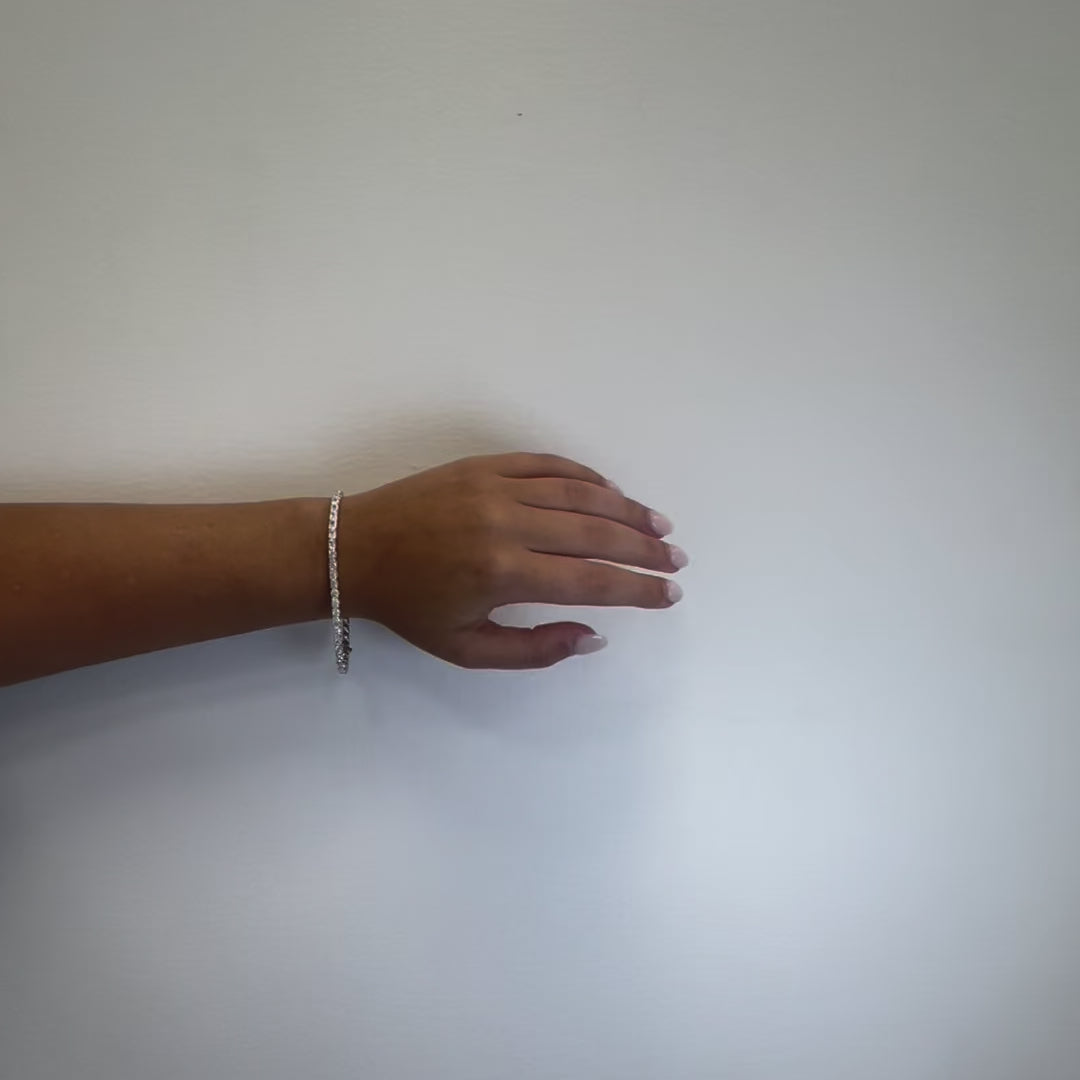 The radiant cut diamonds, known for their exceptional brilliance and fire, are perfectly aligned in a continuous row, creating a mesmerizing display of sparkle and beauty. The classic tennis bracelet design exudes understated glamour, making it suitable for any occasion, from formal events to everyday wear.