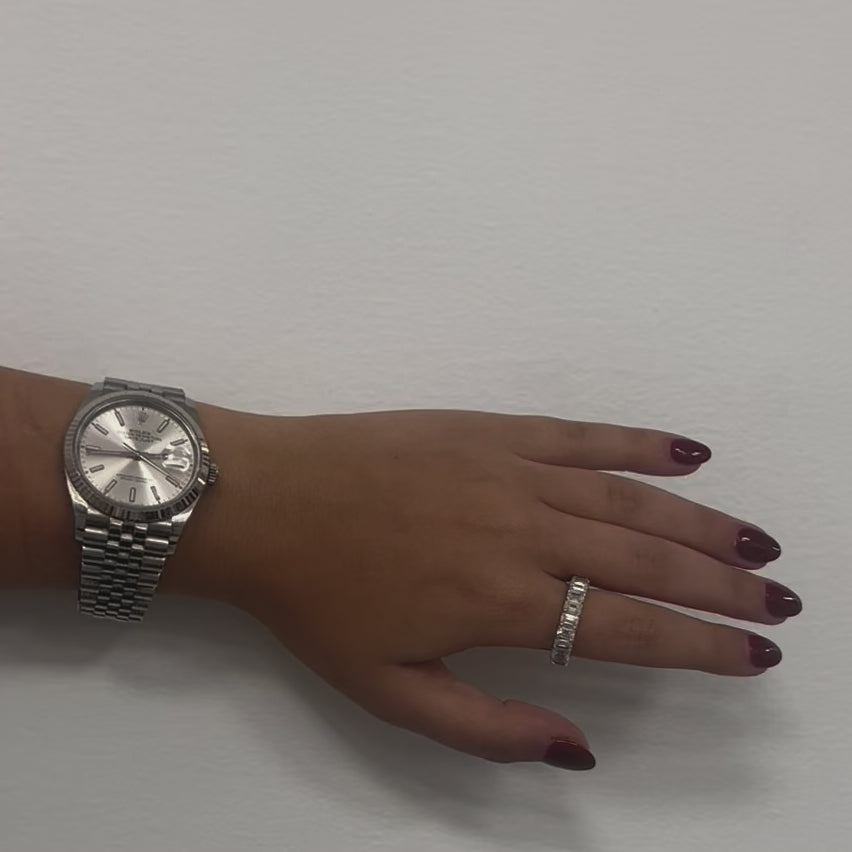 Overall, the Emerald Cut Diamond Eternity Band is a statement piece of jewelry that will capture everyone's attention with its sheer elegance and brilliance. It's a perfect choice for anyone looking to express their love and commitment in a truly extraordinary way and will be cherished for a lifetime.