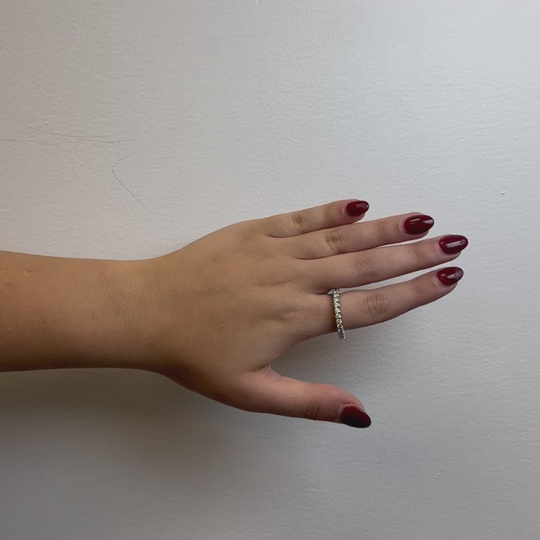 Each diamond is carefully hand selected, ensuring that every facet sparkles with unmatched radiance. Set in a classic 4-prong setting, the diamonds encircle the band in an eternal loop, symbolizing everlasting love and commitment.