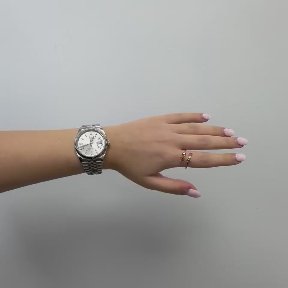 With its wraparound silhouette and asymmetrical gemstone arrangement, this ring blends modern design with timeless sophistication. Whether worn solo or stacked, it brings a fresh pop of color and personality to any look. Available in yellow, white it’s the perfect piece for those who appreciate refined craftsmanship with an artistic twist.