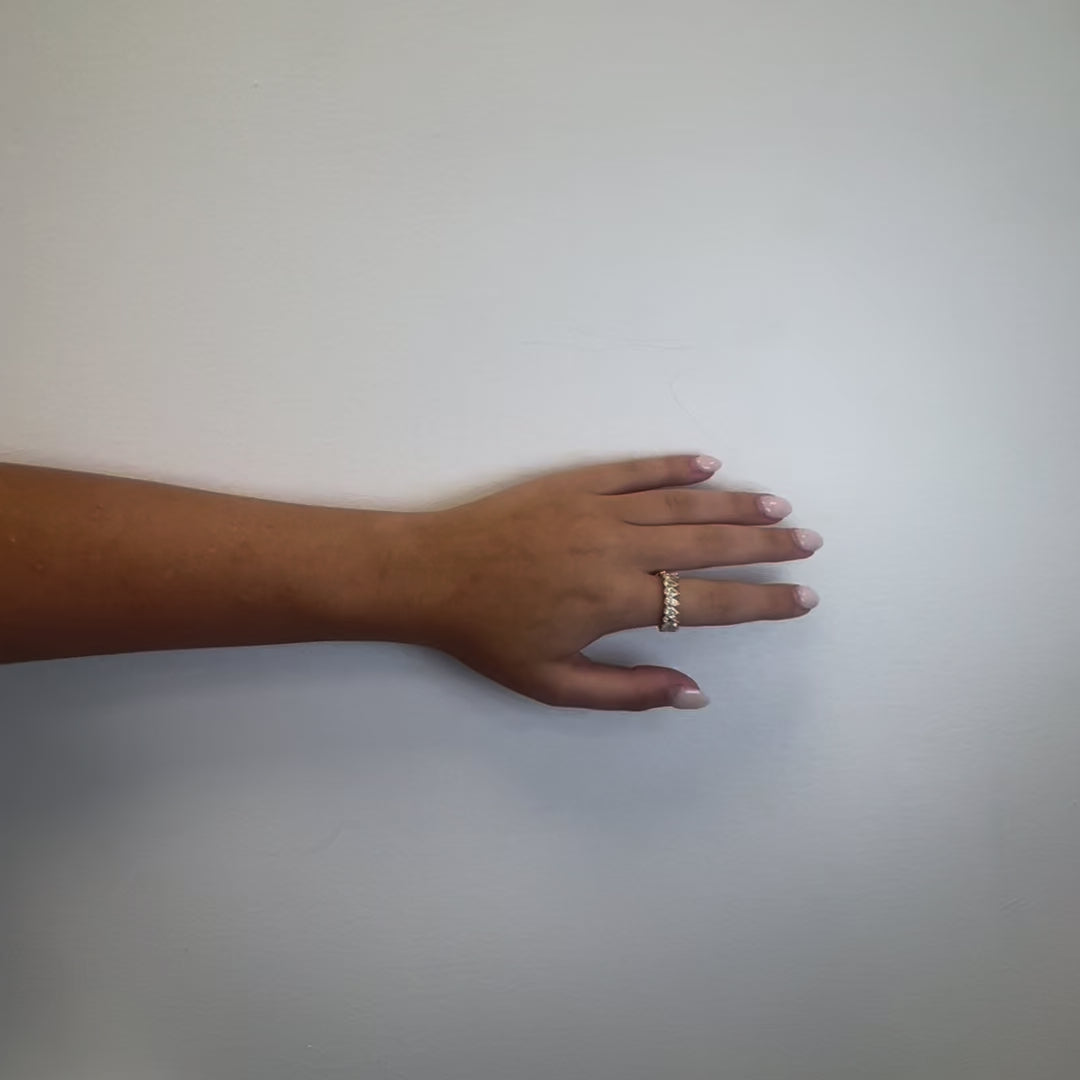 The pear-shaped diamonds, renowned for their exquisite brilliance and unique silhouette, are meticulously arranged in an eternity band design, symbolizing eternal commitment and endless elegance. Each diamond is carefully selected and set to maximize its sparkle and fire, creating a breathtaking display of shimmering luxury.